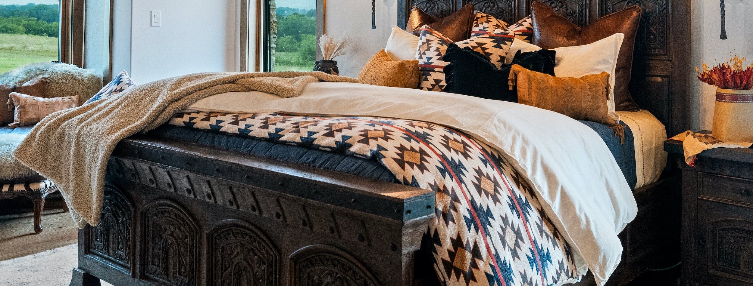 The bedding pieces in our Tasha Polizzi for Paseo Road lineup bring the spirit of the American West and English countryside into the bedroom with style and comfort.